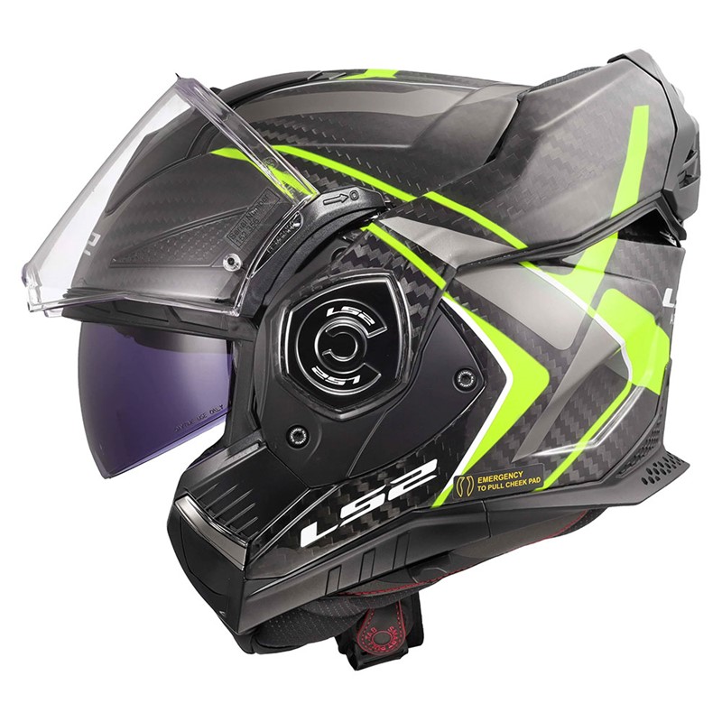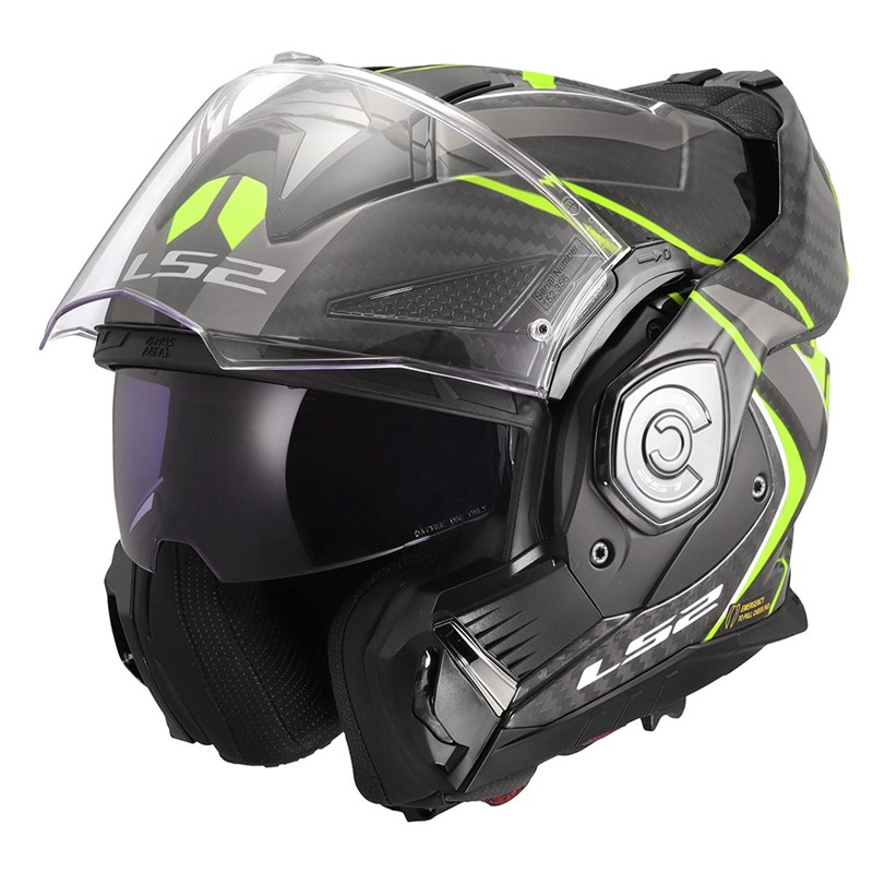 FF901 Advant X er en 180 graders MC-åpningshjelm i kun karbon her i gul utførelse!
